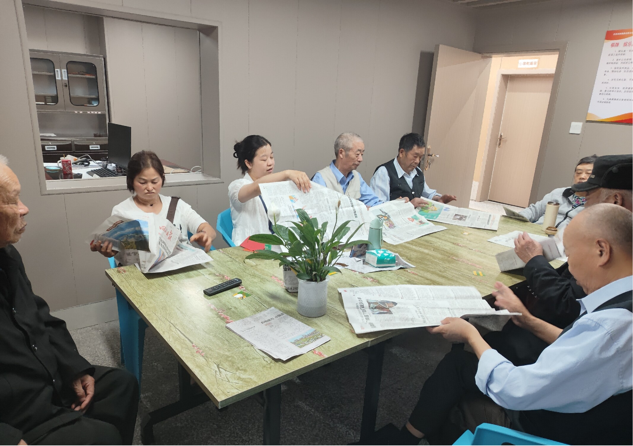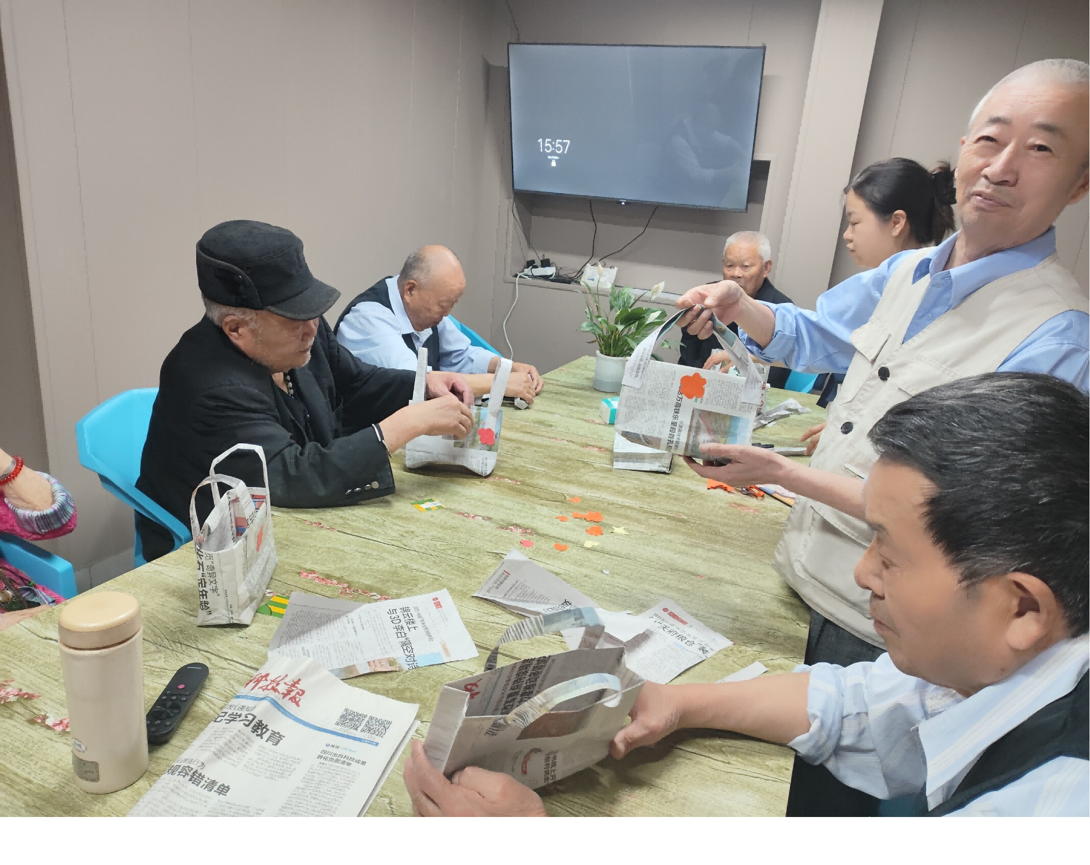 老人們還積極參與了“變廢為寶”的手工活動,用自己勤勞的雙手將一張張廢報(bào)紙變成了精美的手提包。將自己對生活的熱愛融入其中,充分體現(xiàn)了“老有所為,老有所樂”。